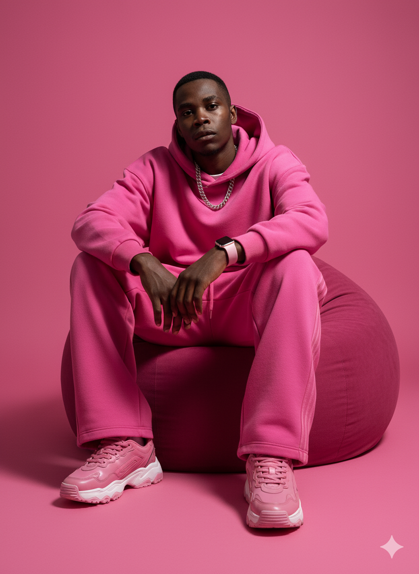 Powerful drip vibes, Adidas campaign editorial look, dramatic studio lighting. Keep my face exactly the same as the uploaded photo.Hyper-realistic cinematic fashion photoshoot of the uploaded person. Seated on a deep pink bean bag, he wears bold all-pink oversized streetwear, pink jumper, wide pink pants, chunky sneakers, apple watch. Solid pink background. Powerful drip vibes, Adidas campaign editorial look, dramatic studio lighting. Keep my face exactly the same as the uploaded photo.0 Comments 0 Shares 633 Views 0 Reviews -