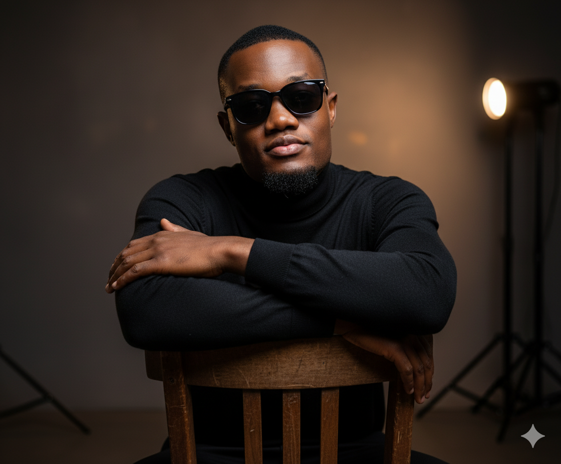 High dynamic range, professional studio photography look, photorealistic 8K resolutionPROMPT Ultra-detailed 8K cinematic portrait of a man sitting on a wooden chair, arms crossed over the backrest, confident expression. He wears a black turtleneck and luxury sunglasses. Sharp focus, realistic skin texture, soft cinematic lighting with moody shadows, shallow depth of field, bokeh background. High dynamic range, professional studio photography look, photorealistic 8K resolution1 Comments 0 Shares 689 Views 0 Reviews1