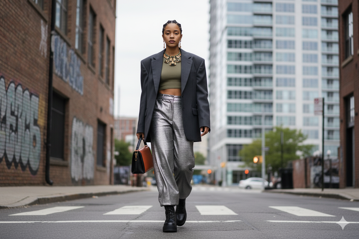 Using Uploaded Image Create Utra Realistic of a High-fashion, full-body photograph of a model in a chic urban outfit, perfect for a fashion magazine cover.
