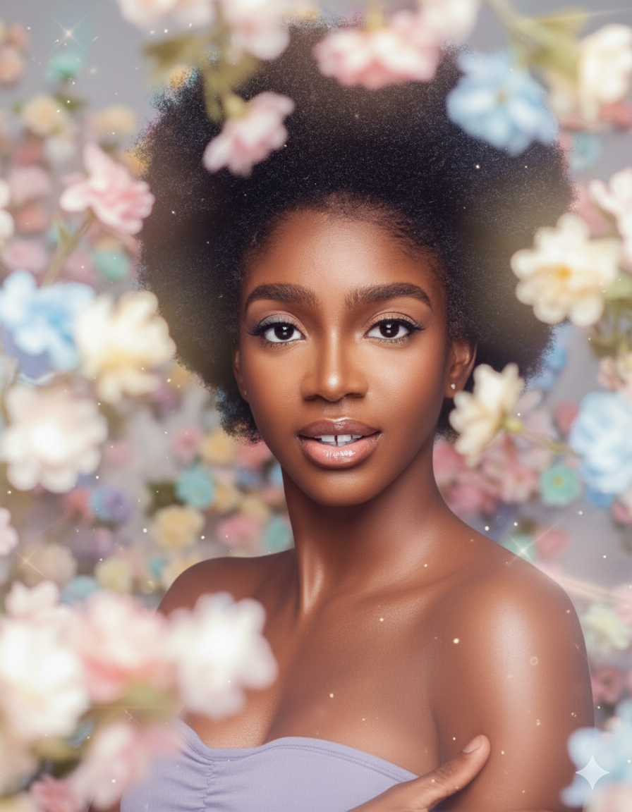 A dreamy aesthetic portrait of a girl with pastel tones, soft glowing skin, gentle lighting, whimsical background of blooming flowers, cinematic bokeh, modern Pinterest-inspired look, natural face preserved, elegant and artistic Instagram photo style, 9:16 aspect ratio #Gemin #Girls